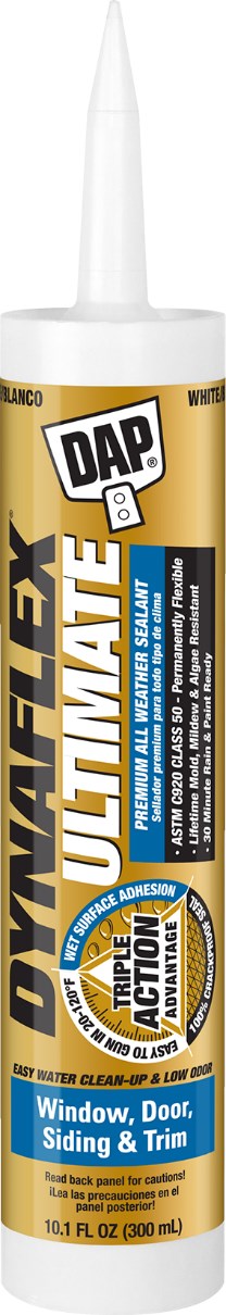 Available in white and clear formulas, Dynaflex Ultimate is designed specifically for window, door, siding, and trim applications. With its Triple Action Advantage, Dynaflex Ultimate offers: